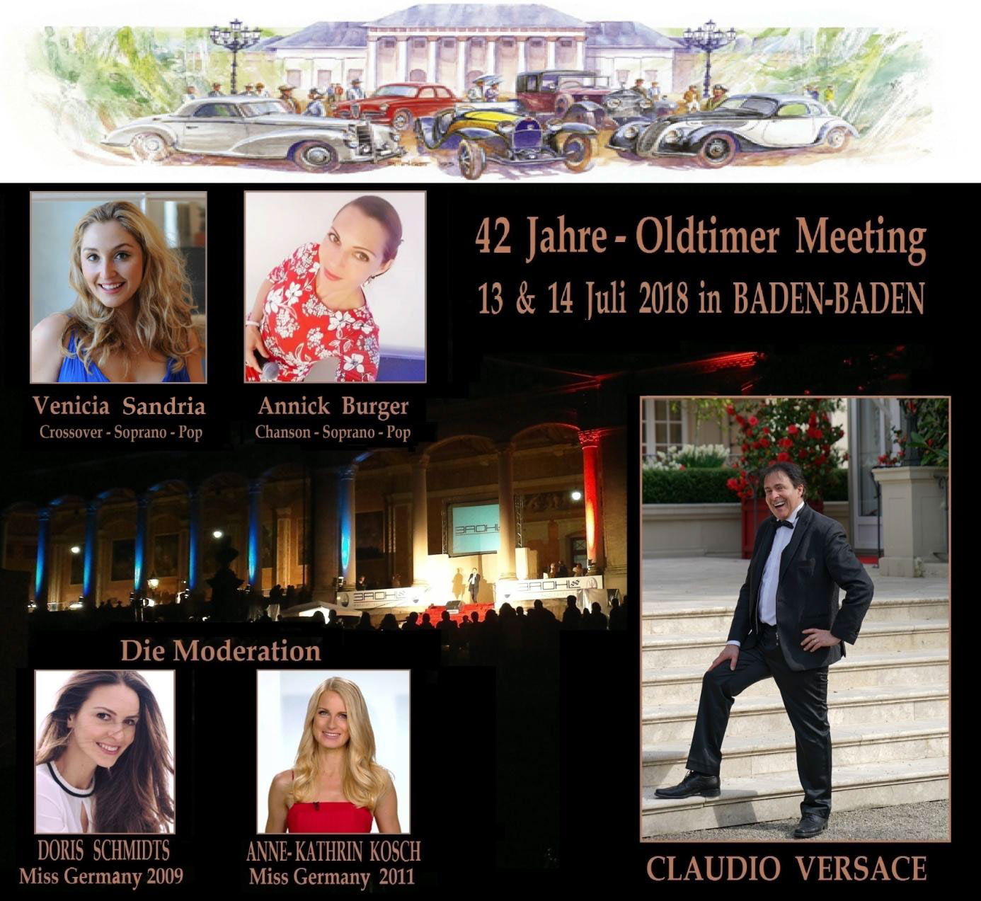 (38., 39., 40., 41.) - 42. Oldtimer Meeting in Baden Baden Heute und morgen 14 Juli 2018 kurz nach der Modeschau von 22 bis 23 Uhr Openair Bühne am Kurhaus in Baden Baden